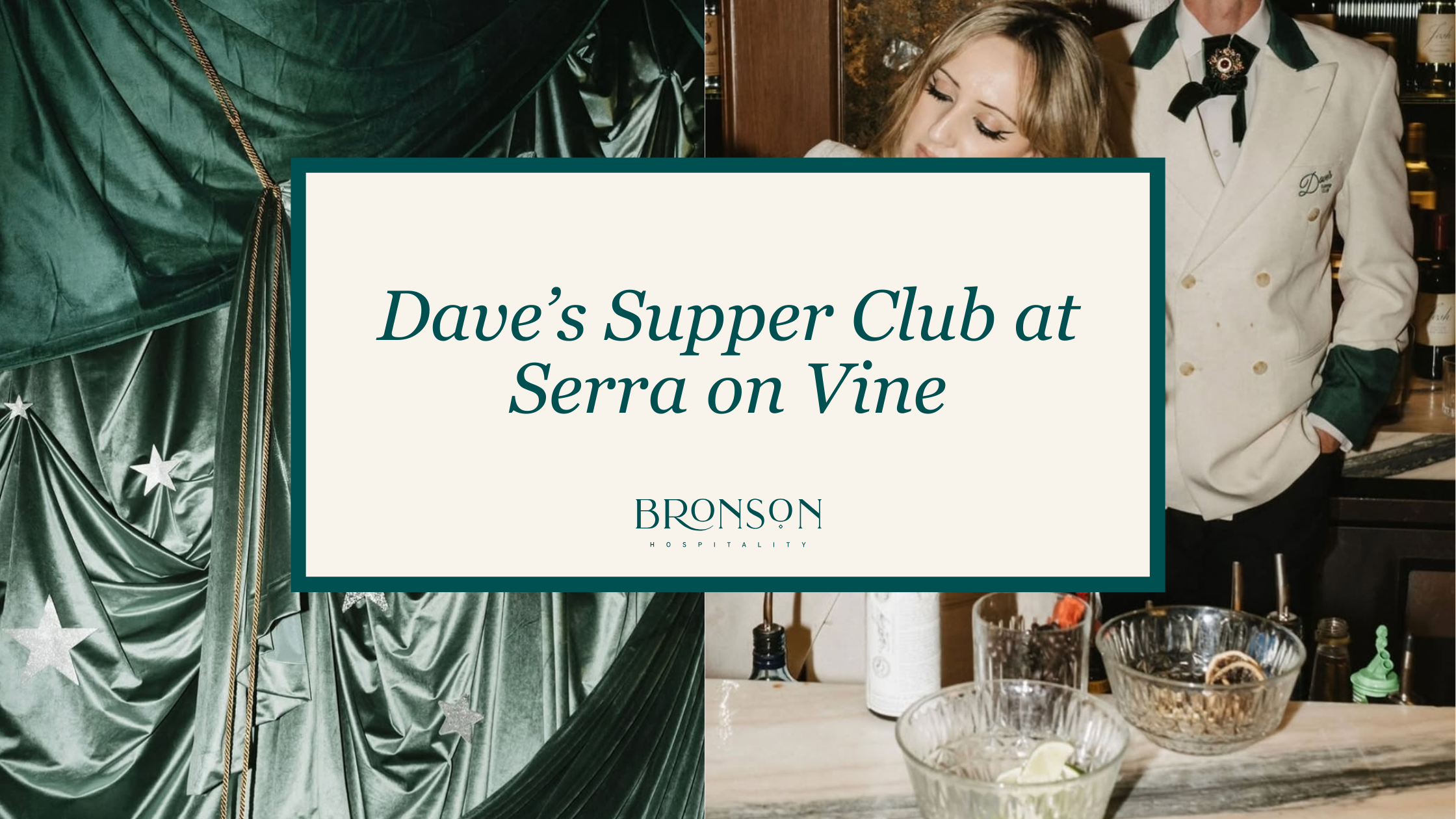 Los Angeles welcomed an unforgettable evening of music, cocktails, and elevated dining as Dave’s Supper Club took over Serra on Vine for a fully immersive supper club experience. Designed to transport guests into a richly layered atmosphere of sophistication and style, the event brought together top-tier event production, hospitality, and design — all under one deep forest-green vision.